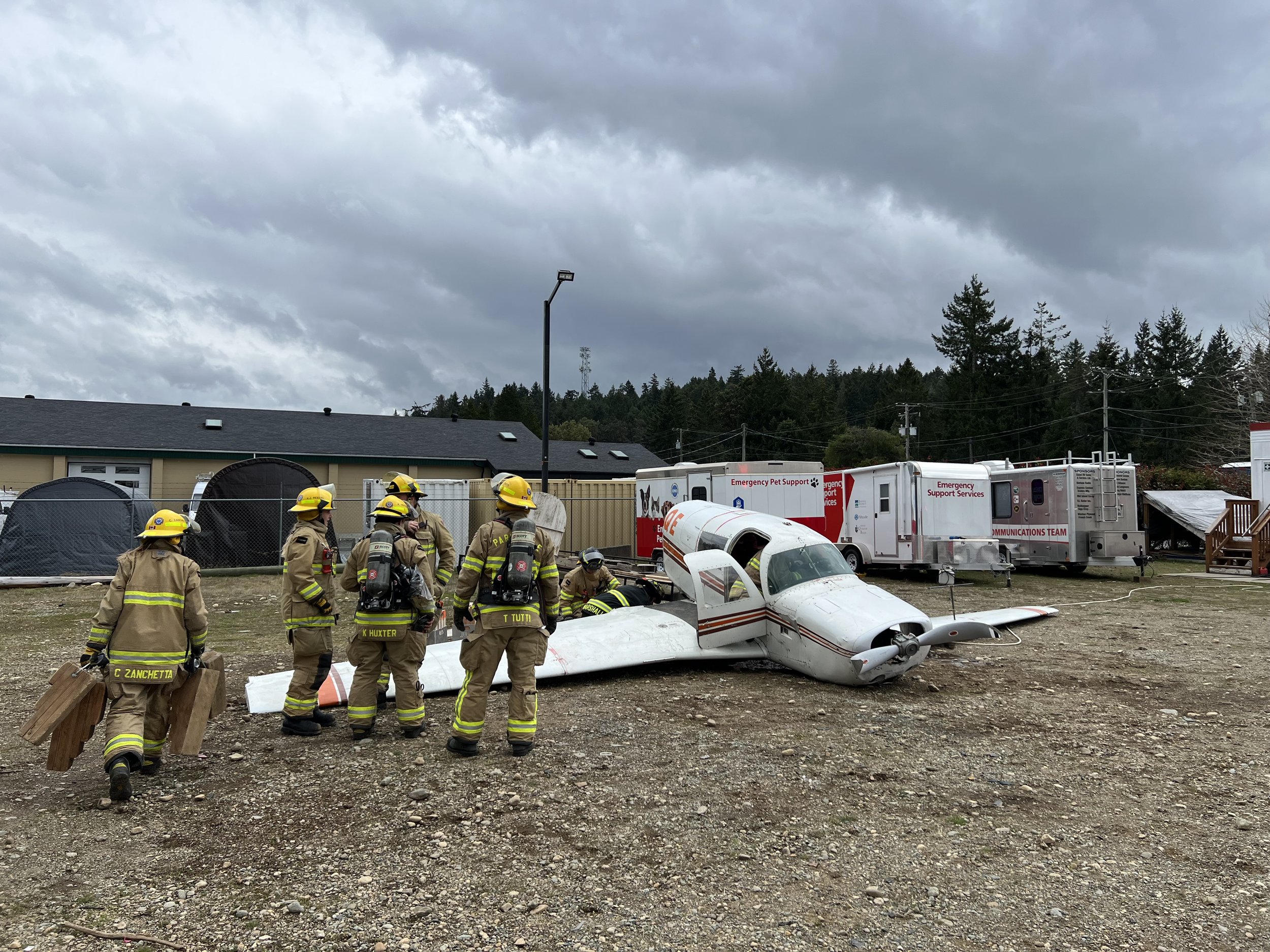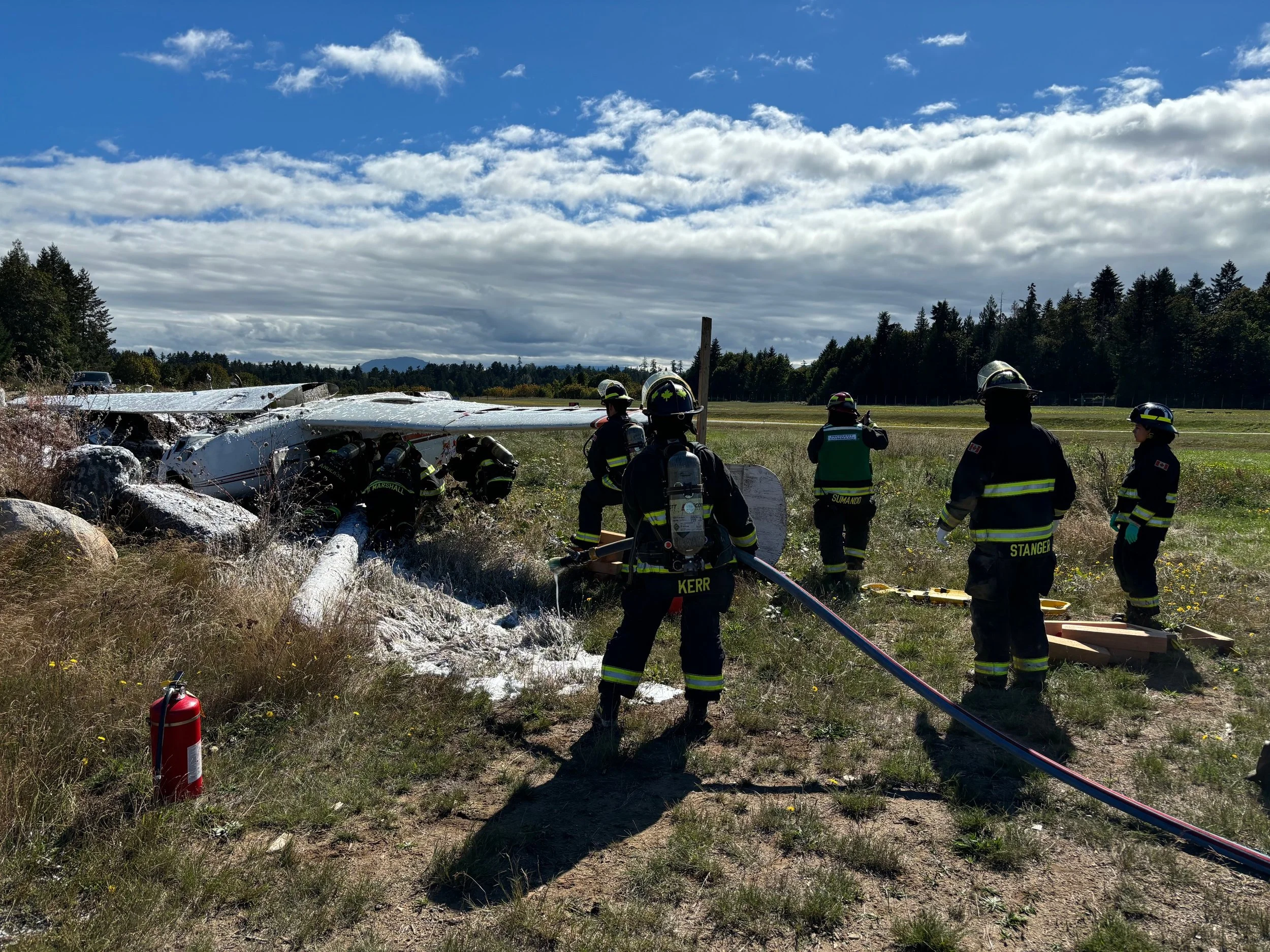 Our larger training prop was a factory produced 4 seat aircraft with over 11000 built. It is representative of the most common general aviation aircraft that firefighters may encounter. This aircraft has an enclosed cabin, more complex cockpit and instruments, heavier gauge construction, and markings aligned with common factory produced aircraft.
